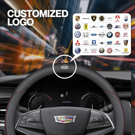 Breathable Anti Slip Leather Car Steering Wheel Cover Universal Fit with Printed Car Logo