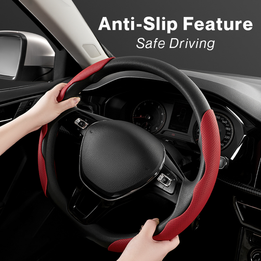 Nappa Leather Microfiber Anti-Slip Car Steering Wheel Cover Universal Fit