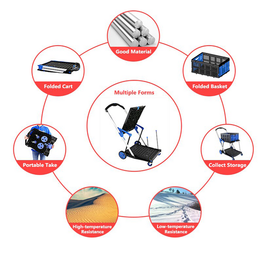 Multi-Purpose Foldable Double-Decker 4 Wheels Plastic Shopping Cart Trolley with Basket