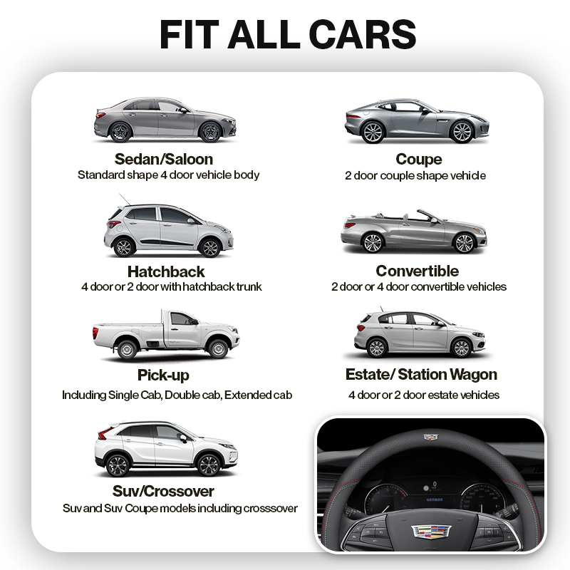 Our steering wheel covers are designed to fit most vehicles including cars, trucks, sedan, vans and SUVs. Rear seat cover designed to accommodate 50/50, 40/60, 60/40, and 40/20/40 split benches.