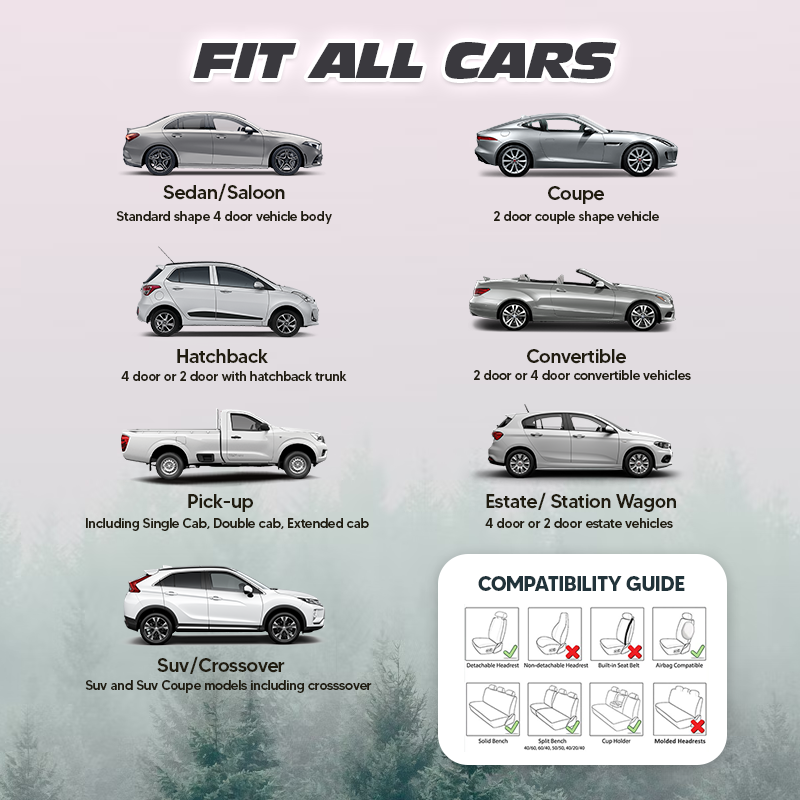 Our seat covers are designed to fit most vehicles including cars, trucks, sedan, vans and SUVs. Rear seat cover designed to accommodate 50/50, 40/60, 60/40, and 40/20/40 split benches.