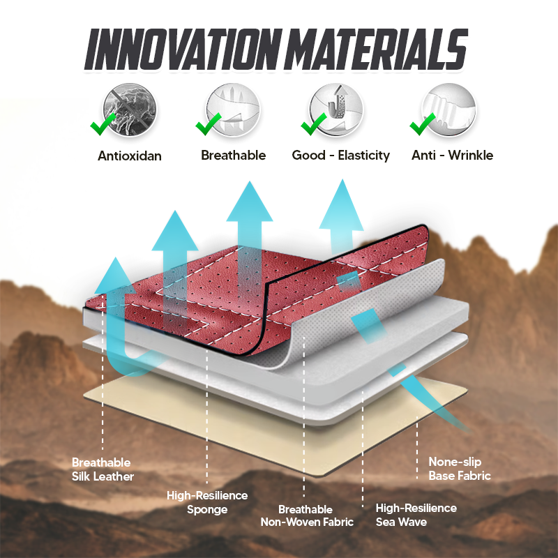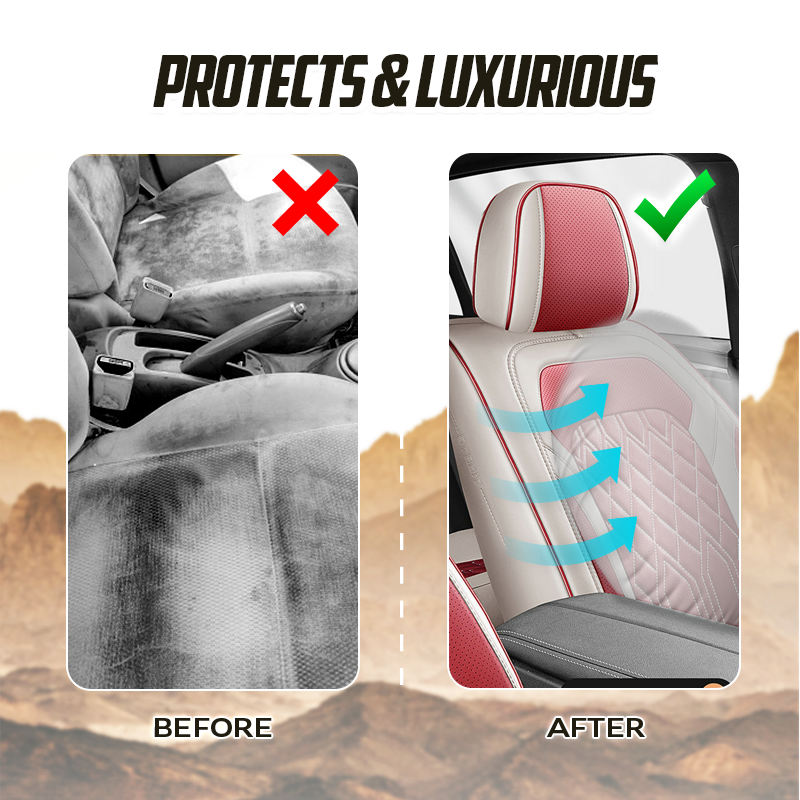 Made of high quality PU leather and treated with a protective coating to make them as durable as they are beautiful. 3mm of foam padding disperses heat, eliminating the struggle of red hot leather and keeping you cool on even the hottest summer days. Soft, wrinkle-free, waterproof leather makes it easy to clean when used.