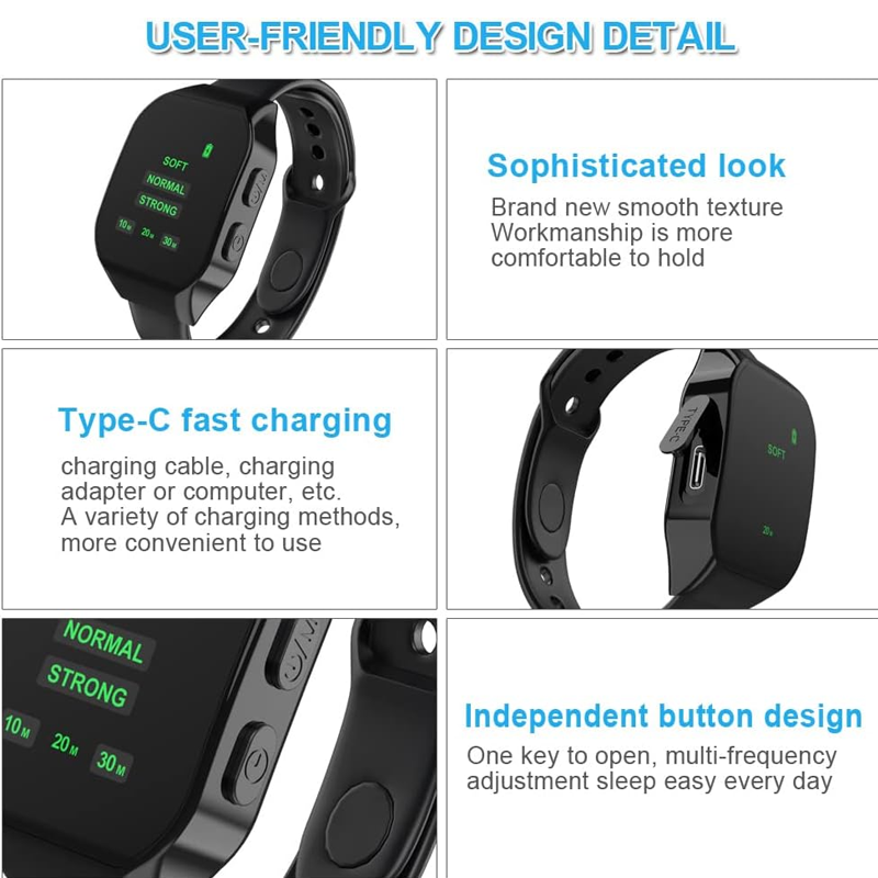 Its soft, standard, and powerful 3 modes provide a soothing sleep experience during the night, allowing you to wake up feeling refreshed and stress-free. A perfect way to help you rest and empower your day. Get ready for an efficient night with this helpful wristband watch device.