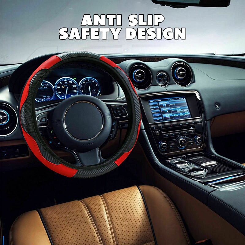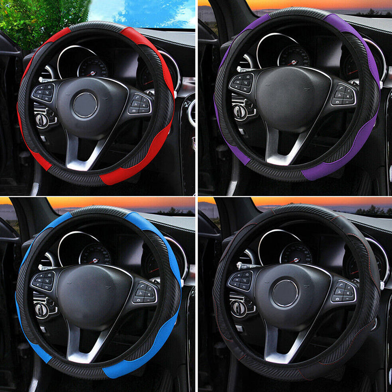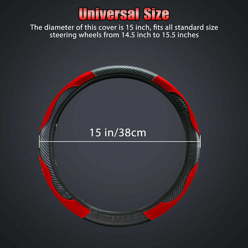 Microfiber Leather Anti-Slip Car Steering Wheel Cover Universal Fit
