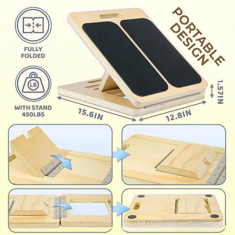 Crafted from heavy-duty wood, this board supports up to 450 lbs while weighing only 4.5 lbs. Its compact design lets you bring your training anywhere—home, gym, or office—so you never miss a chance to strengthen or recover.