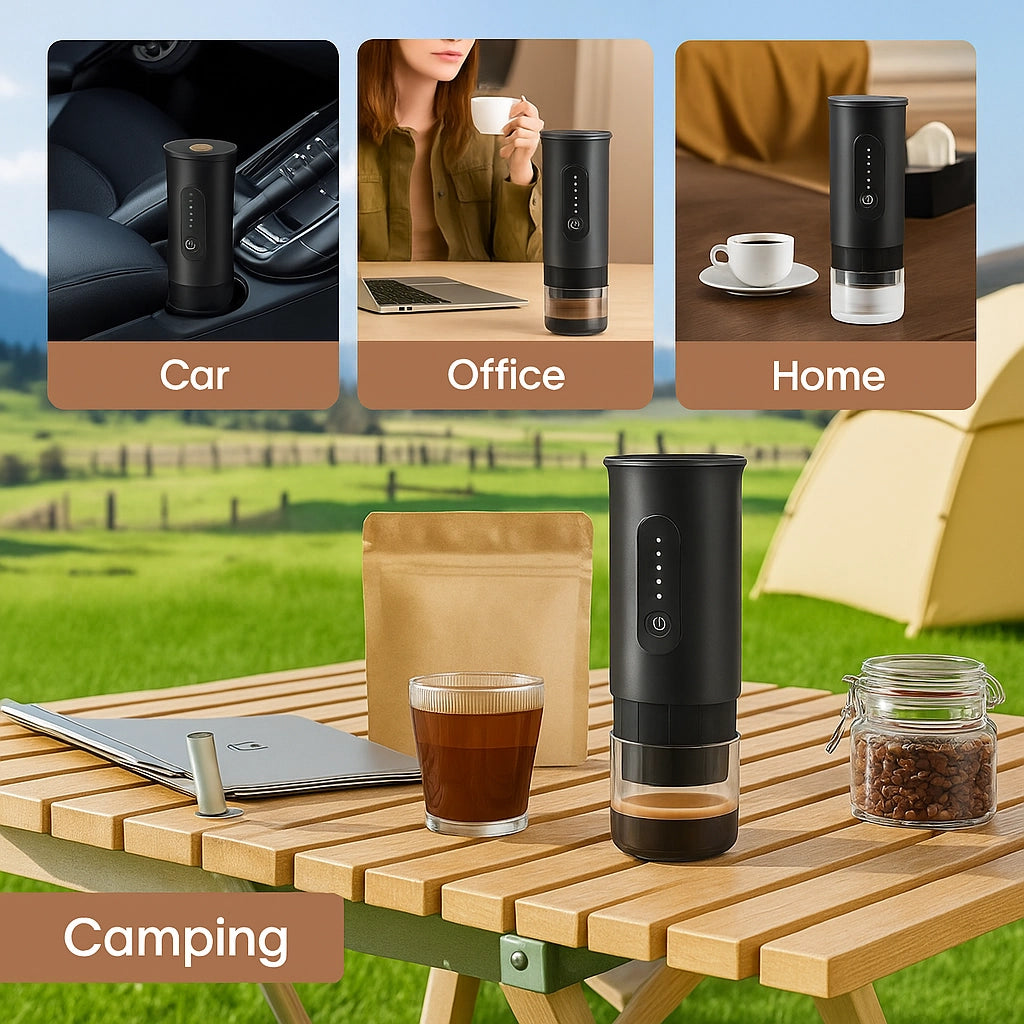 Designed for modern explorers and busy professionals, this portable electric coffee maker lets you enjoy fresh espresso wherever life takes you. Whether you're camping in the wilderness, commuting to the office, or relaxing at home, its compact and lightweight build fits perfectly in your bag, car, or desk.