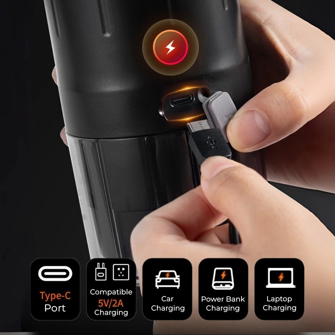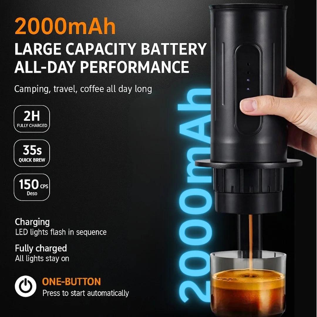 Equipped with a 2000mAh battery and USB Type-C charging, this device powers up easily via car, power bank, or laptop. A full charge supports up to 150 cups with hot water, making it your reliable coffee companion for travel, work, or weekend getaways.