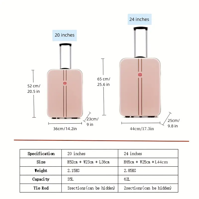 Constructed with high-quality materials, it is rugged and durable for any type of journey. This lightweight luggage offers ample storage space and can be effortlessly folded when not in use. Enjoy your next trip with our reliable and stylish luggage!