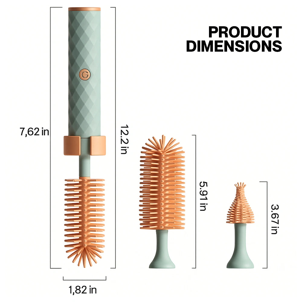 - Brush Action: 360° rotating silicone bristles for deep, scratch-free cleaning.