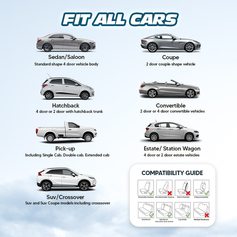Our seat covers are designed to fit most vehicles including cars, trucks, sedan, vans and SUVs. Rear seat cover designed to accommodate 50/50, 40/60, 60/40, and 40/20/40 split benches.