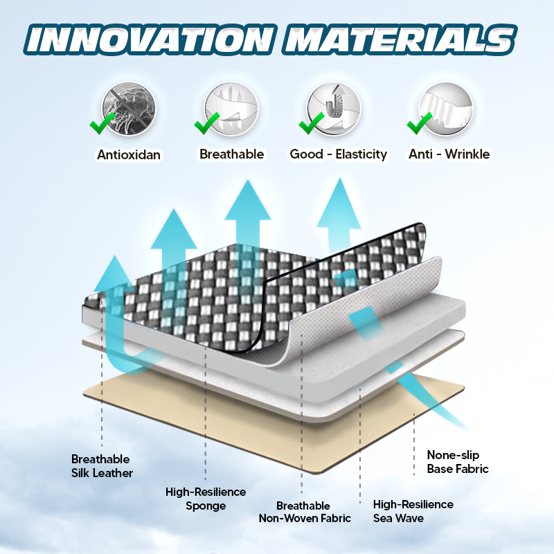 Made of high quality PU leather and treated with a protective coating to make them as durable as they are beautiful. 3mm of foam padding disperses heat, eliminating the struggle of red hot leather and keeping you cool on even the hottest summer days. Soft, wrinkle-free, waterproof leather makes it easy to clean when used.