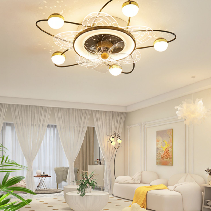 Starry Sky Ceiling Living Room Fan Ceiling Light Simple Modern Movable Head Electric